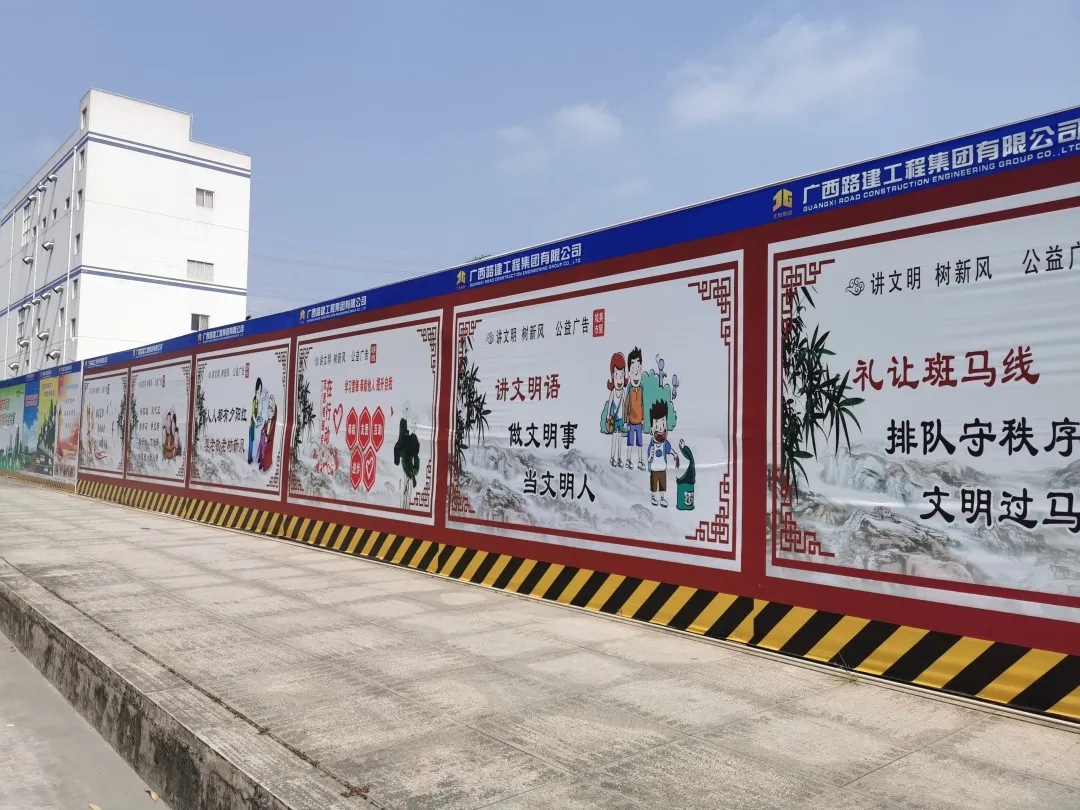 在施工现场,项目各区域建筑工地的围挡更规范整齐,张贴的种种公益广告让围挡更美观,也让文明理念得以流传,营造了良好的创城气氛。降尘喷淋系统实施降尘作业也是项目助力推进文明都会创立,营造整洁、有序都会建设情况的一项举措。