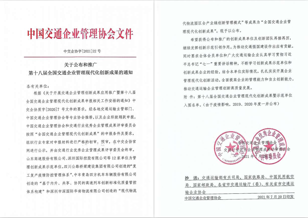 ½üÈÕ£¬Öйú½»Í¨ÆóÒµÖÎÀíлᡢ½»Í¨ÐÐÒµÓÅÐãÆóÒµÖÎÀí½á¹ûÆÀÉóίԱ»áÐû²¼¡¶¹ØÓÚÐû²¼ºÍÍÆ¹ãµÚÊ®°Ë½ìÈ«¹ú½»Í¨ÆóÒµÖÎÀíÏÖ´ú»¯Á¢Òì½á¹ûµÄ֪ͨ¡·£¬ ...
